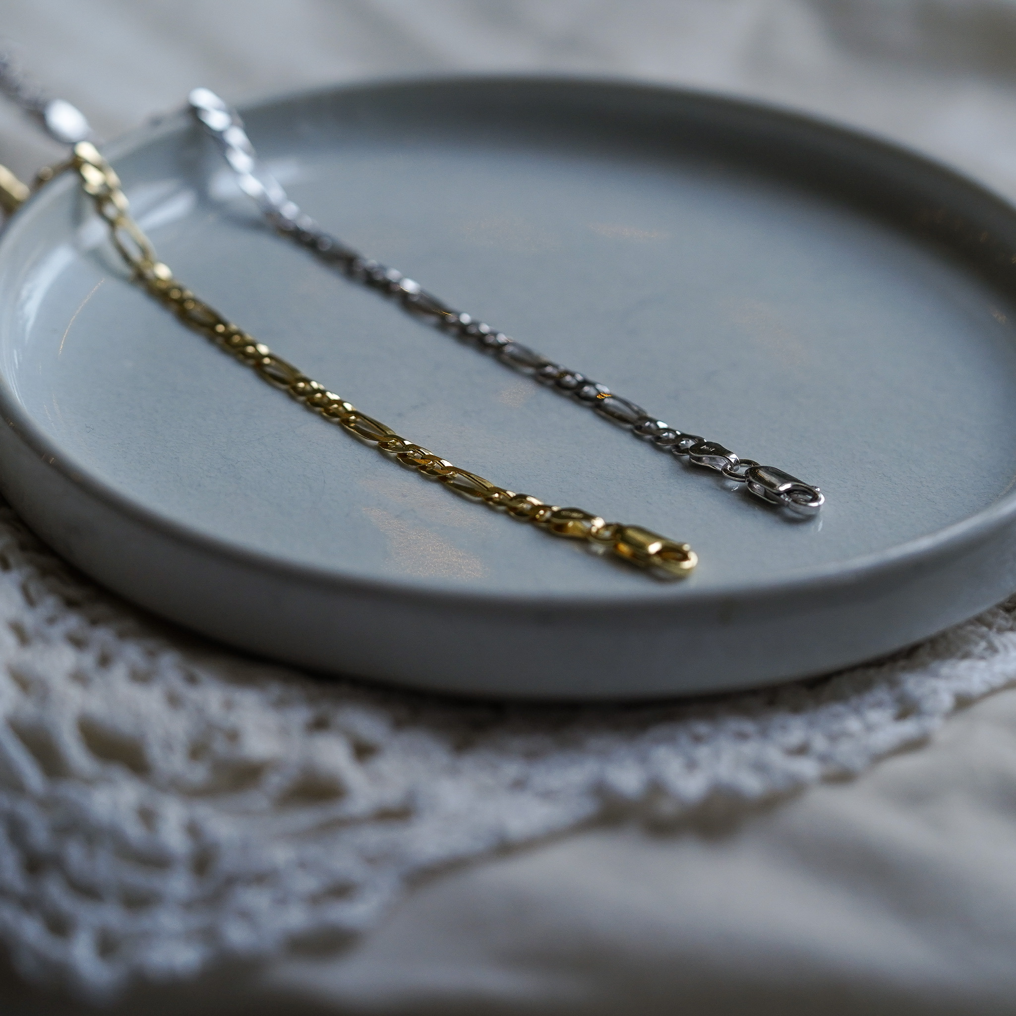 HomeBraceletsFlat Figaro Chain Bracelet Flat Figaro Chain Bracelet$50.00 Metal Color Choose an optionGoldSilverClear Qty.: Flat Figaro Chain Bracelet quantity Buy now SKU: N/A Category: Bracelets Product ID: 7587 Additional information Additional information Metal Color Gold, Silver You may also like View all Little Loopy $75.00 Buy now Gold and Silver Half Sister $60.00 Buy now Sister Adjustable $50.00 Buy now This product has multiple variants. The options may be chosen on the product page Pebbles $40.00 Buy now